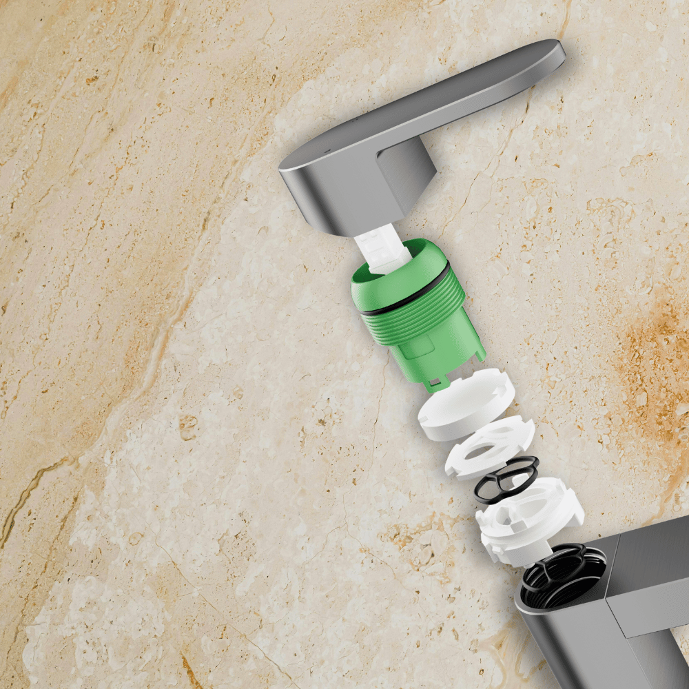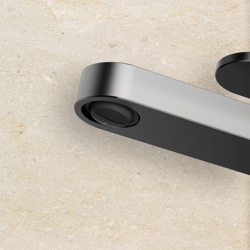 Ten model wyróżnia się prostokątną, zdecydowaną formą. Płaska wylewka oraz geometryczna dźwignia nadają mu charakteru, a całość zachowuje nowoczesną elegancję. To bateria, która od razu zwraca uwagę swoją spójnością i rygorystyczną prostotą.